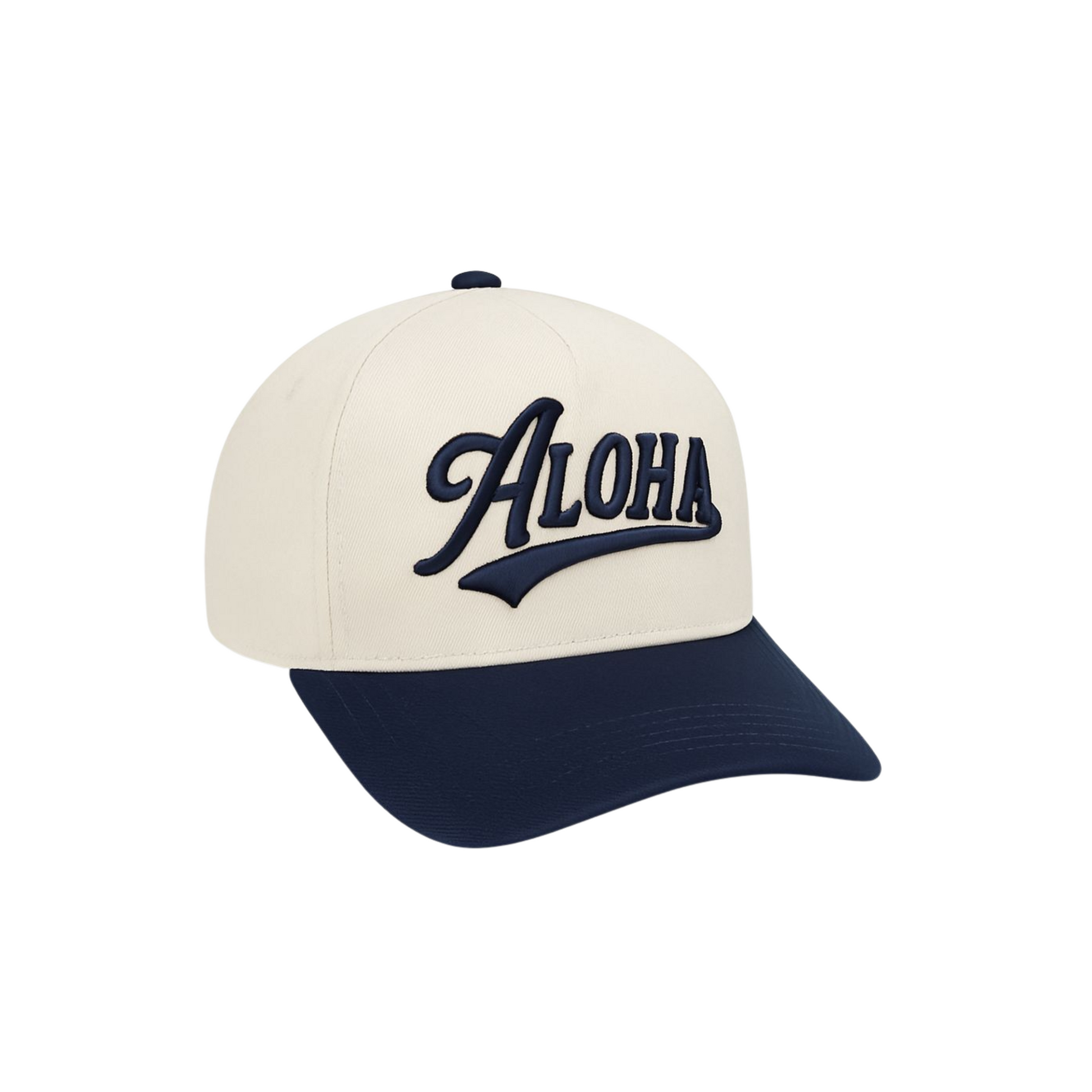 A clean take on the classic baseball cap. Cut in off white with a navy bill and finished with Hawaii embroidery. Includes an adjustable strap for a relaxed, custom fit.